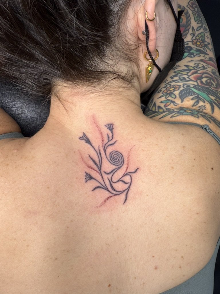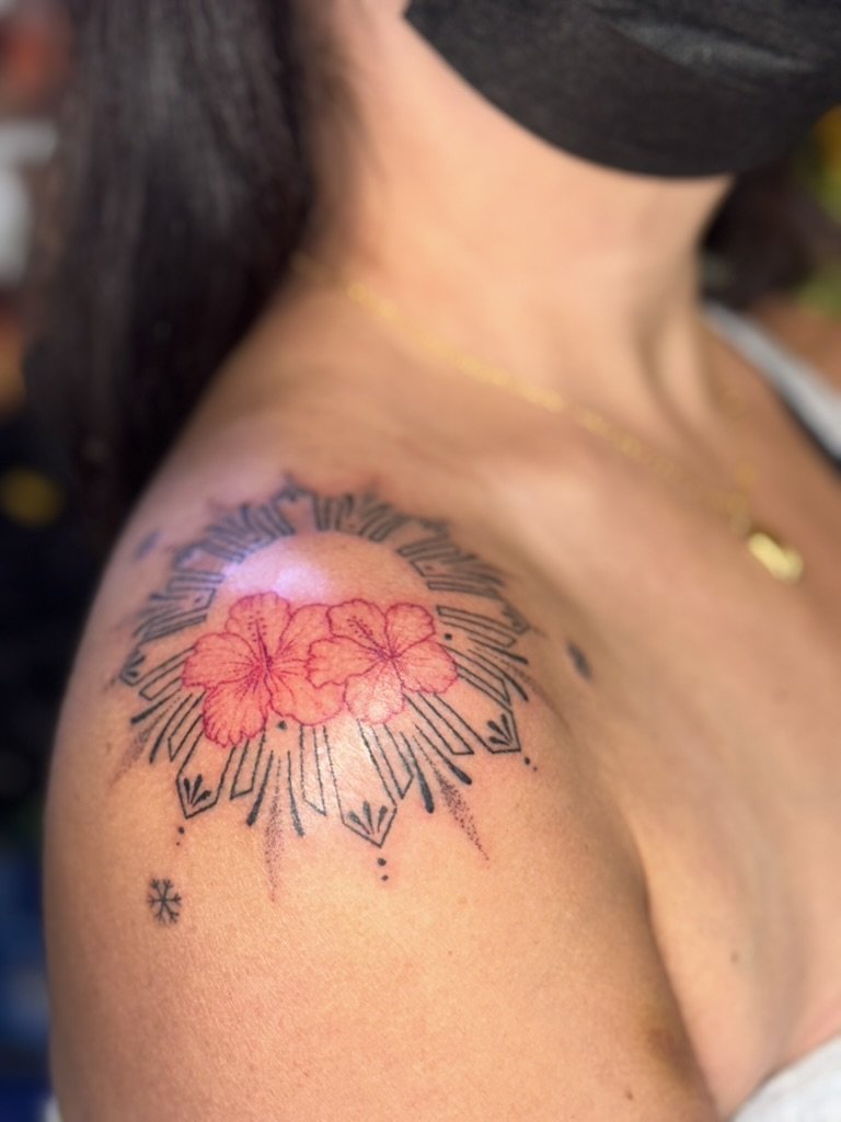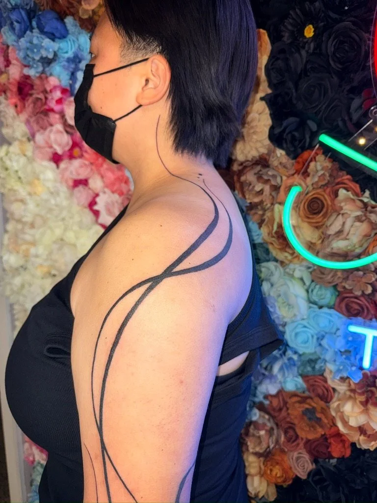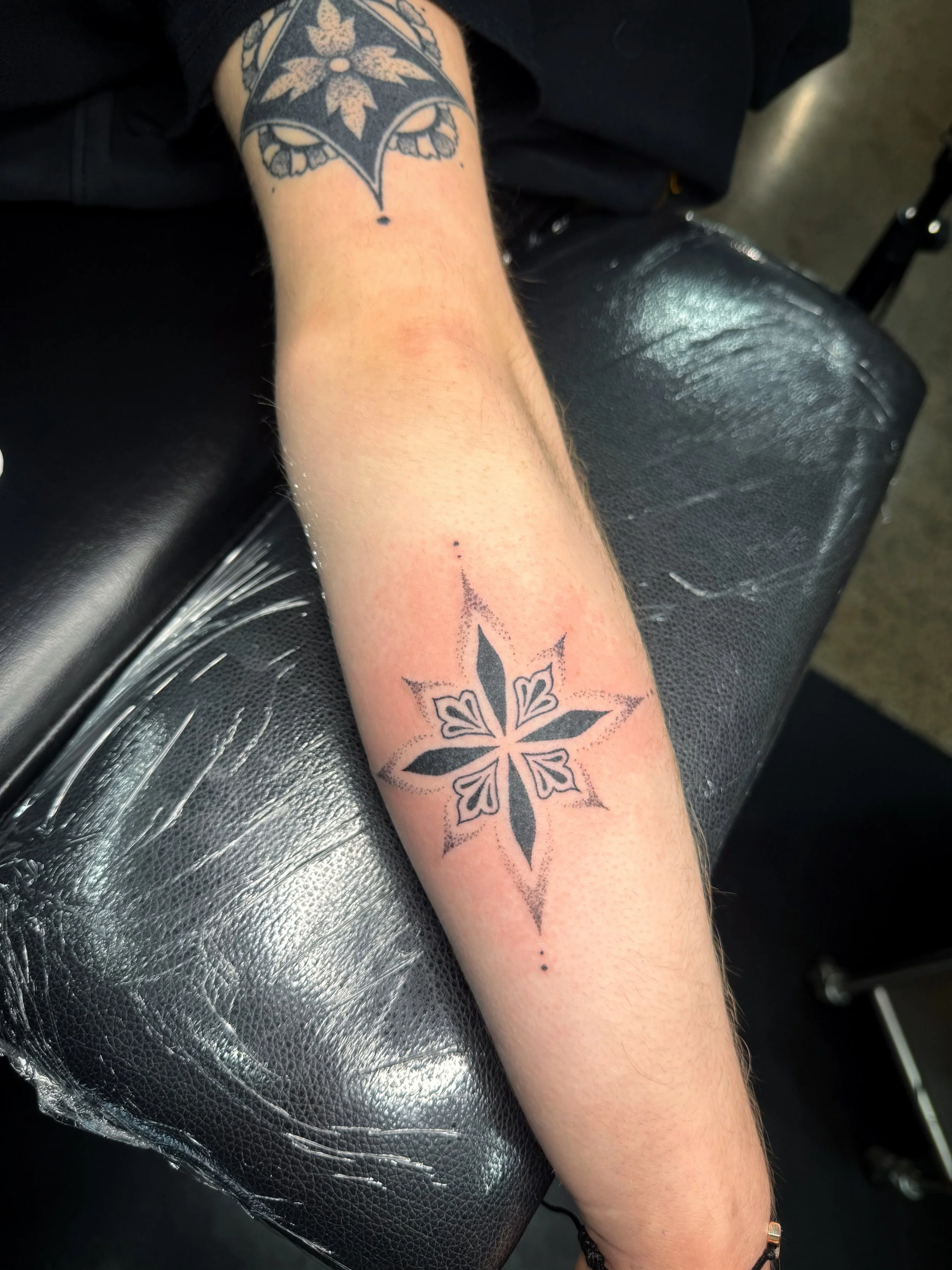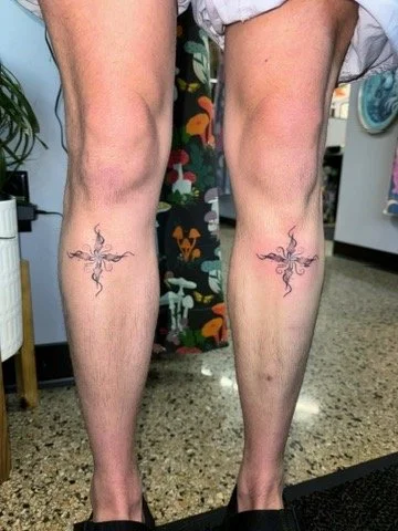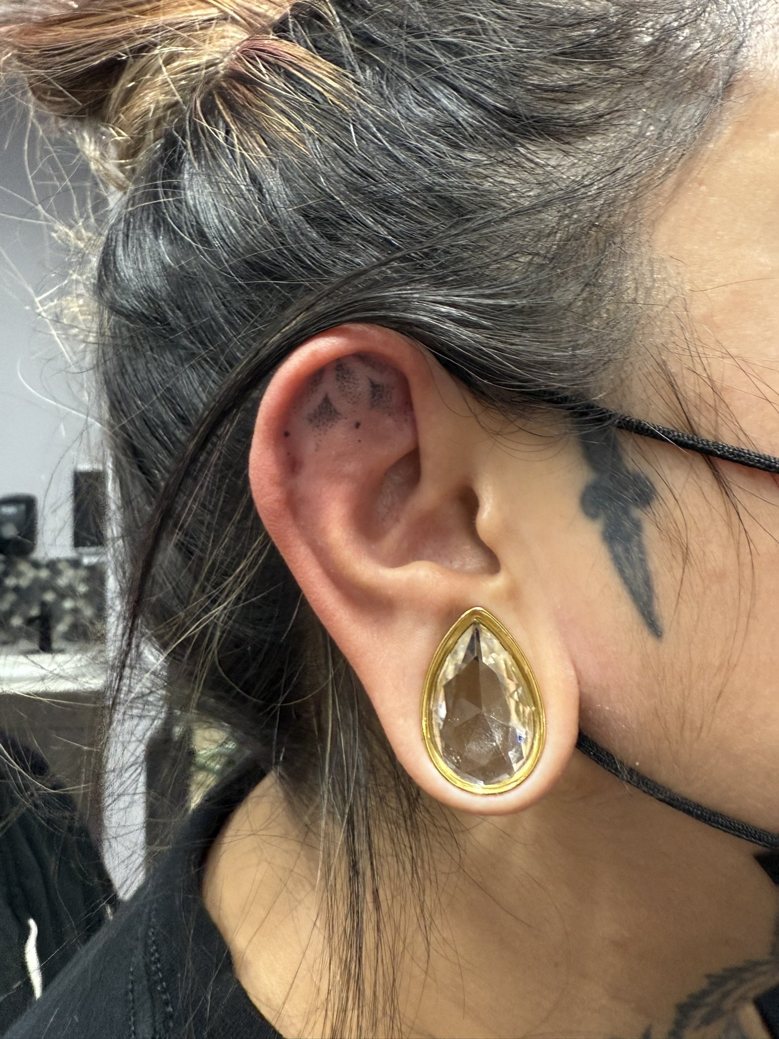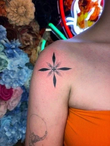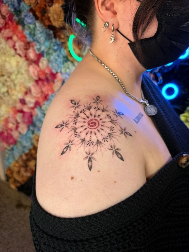 All designs are hand poked, meaning there is an organic flow rather than pristine symmetry. This approach challenges the perfectionist nature and allows us to find beauty in the elegance of “imperfection.”