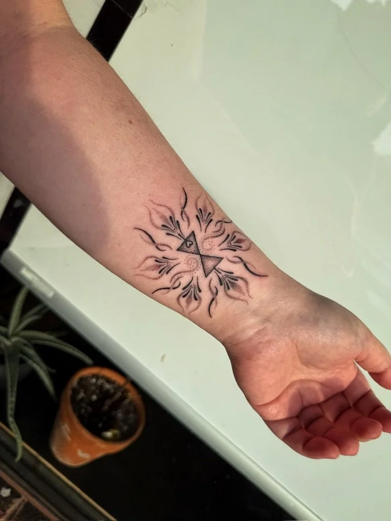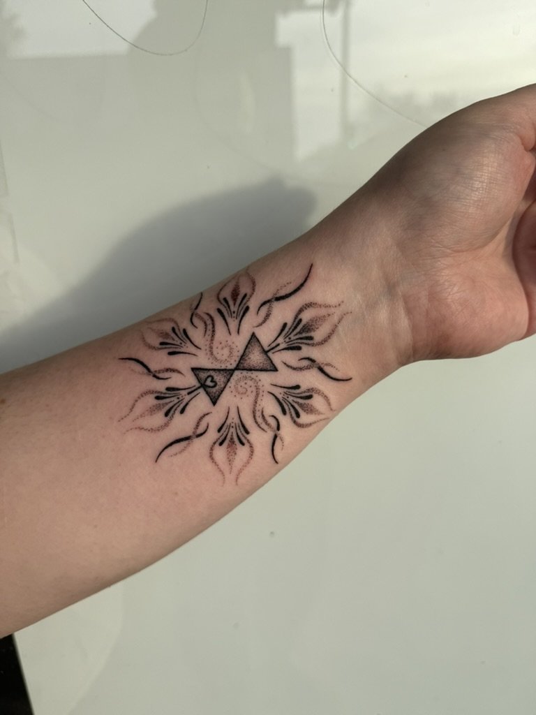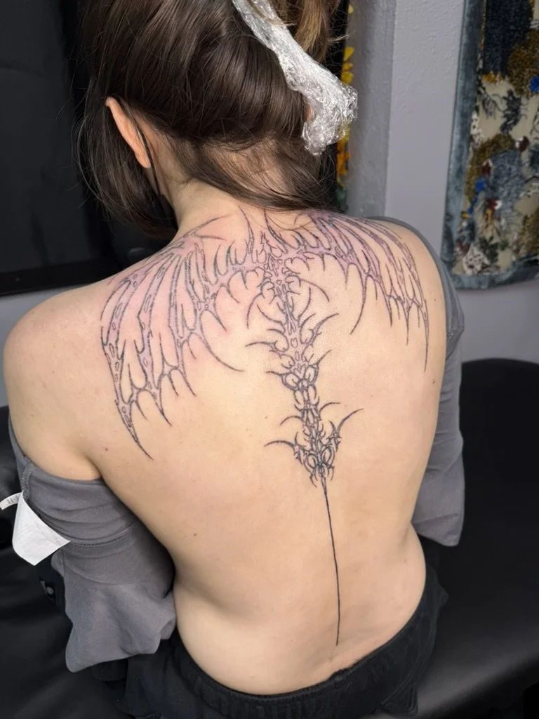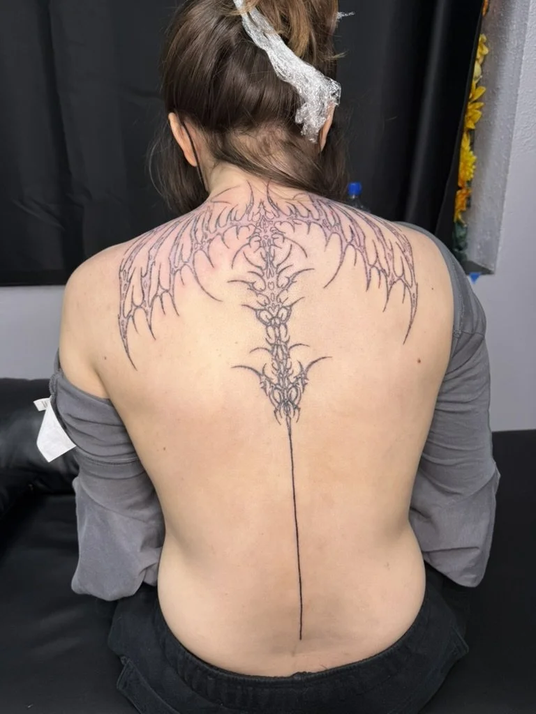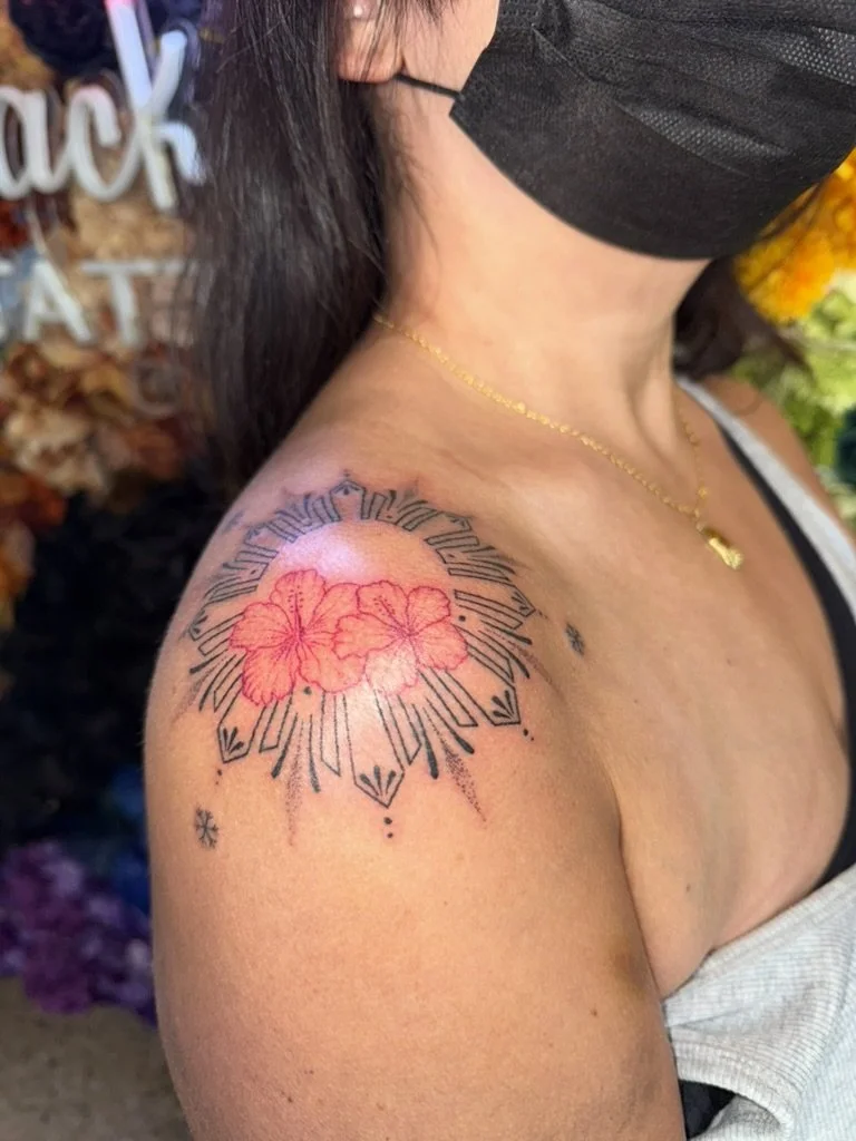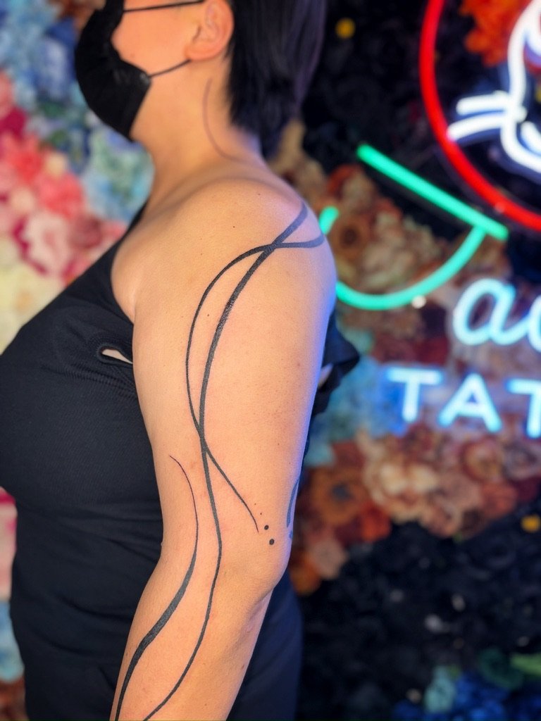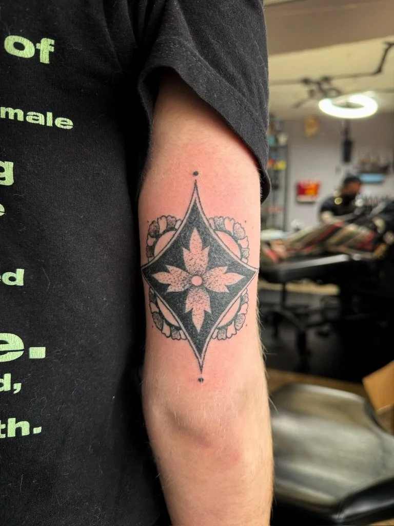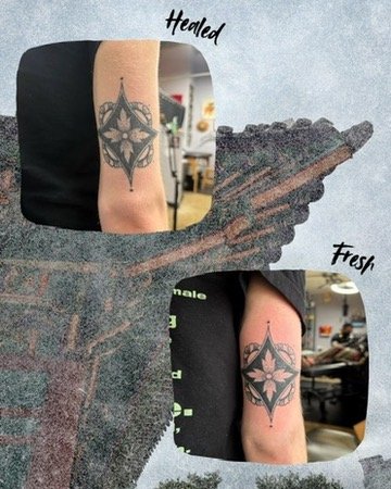 All designs are hand poked, meaning there is an organic flow rather than pristine symmetry. This approach challenges the perfectionist nature and allows us to find beauty in the elegance of “imperfection.”